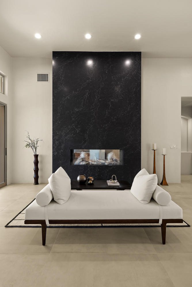 We built a brand-new fireplace to anchor the living room, opened up a large archway to improve flow, and replaced outdated features with streamlined, modern details. New flooring and lighting throughout brought the entire home together.